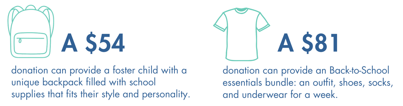 We will not be able to reach our goal to serve every child in foster care who needs us with collection drives alone. Kids in foster care, from tiny tots to young adults, need more than just pencils! Your donation helps us bridge the gap and get them everything they need to rock their first day of school.